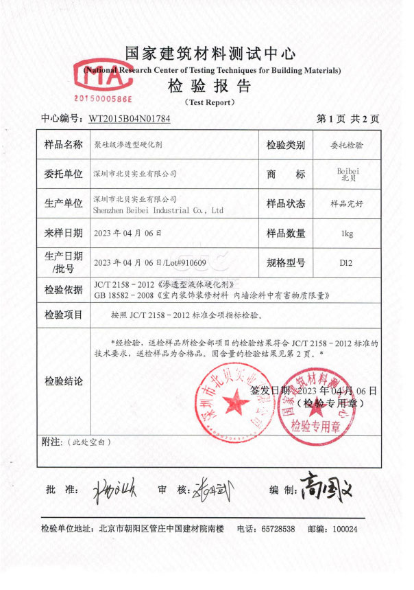 聚硅級(jí)滲透型硬化劑檢測(cè)報(bào)告